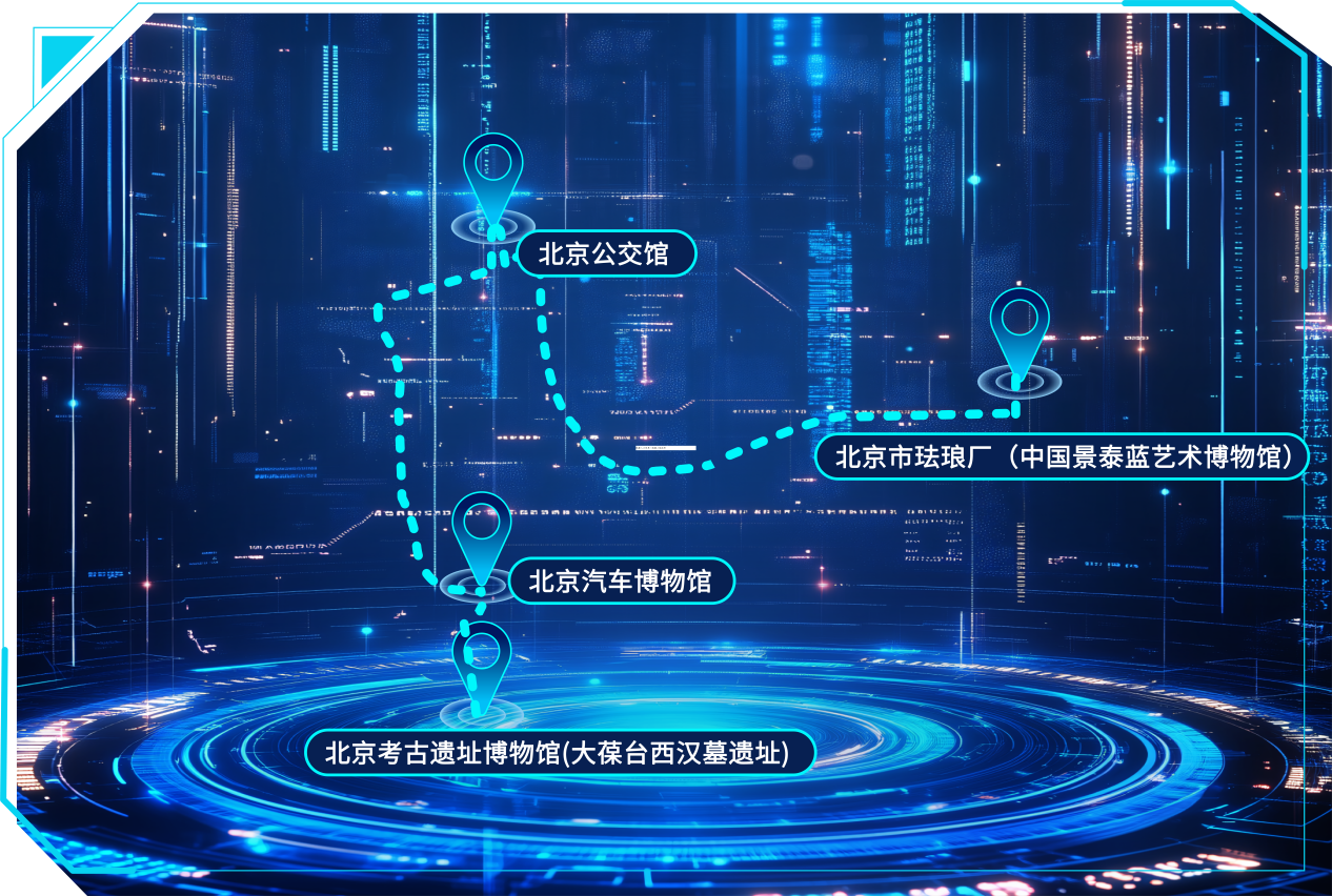 线路点位:北京市珐琅厂(中国景泰蓝艺术博物馆)→北京公交馆→北京汽车博物馆→北京考古遗址博物馆(大葆台西汉墓遗址)
