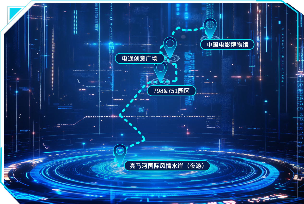 线路点位:中国电影博物馆→电通创意广场→798&751园区→亮马河国际风情水岸(夜游)