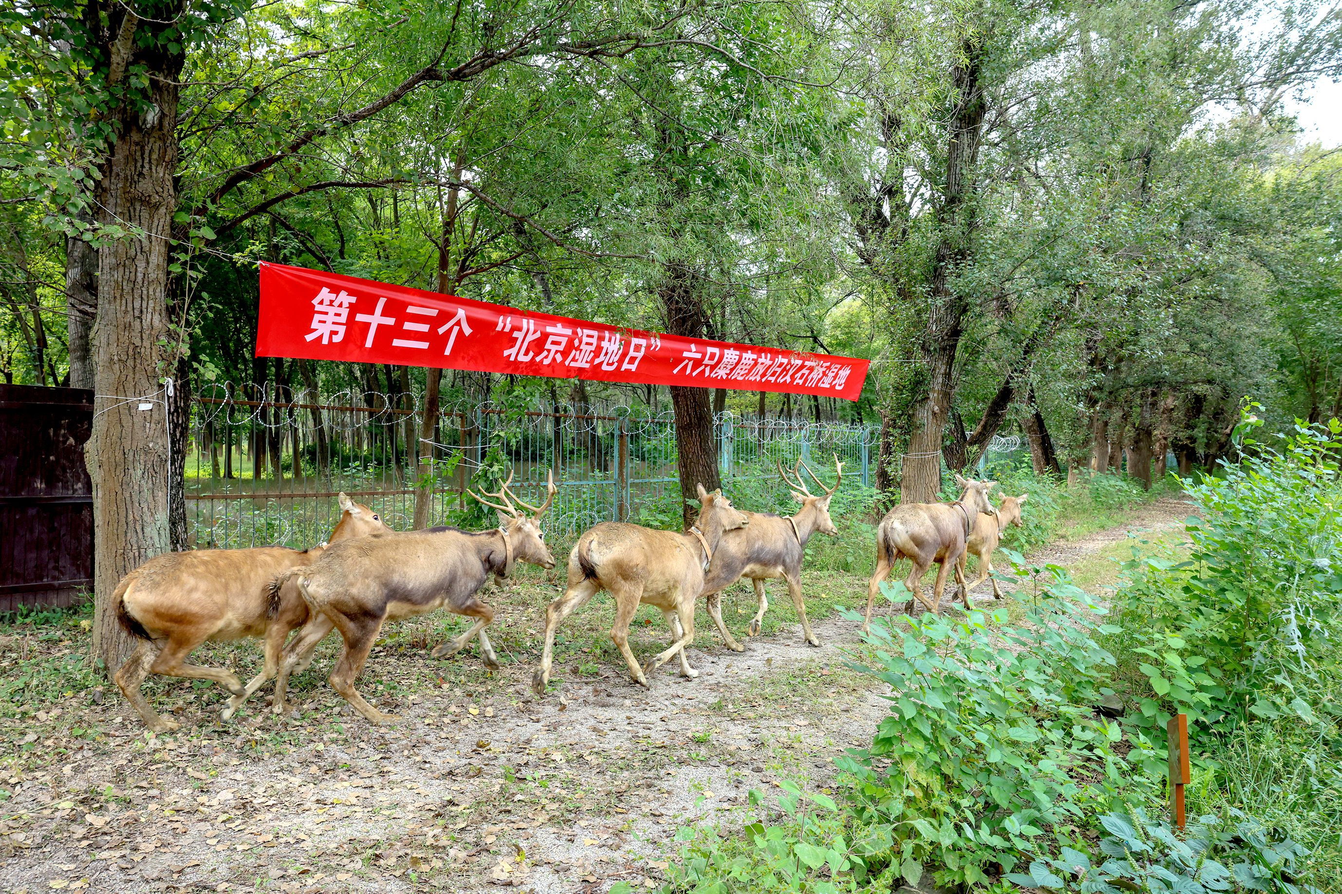 9月23日,北京市园林绿化局在顺义汉石桥湿地自然保护区举办第十三个“北京湿地日”主题宣传活动,6只麋鹿来到美丽的汉石桥湿地,开展野化训练。继北京野鸭湖湿地公园后,麋鹿又一次从大兴来到“新家”野化训练,标志着北京在濒危物种保护、湿地生态修复和生物多样性提升方面取得新进展。