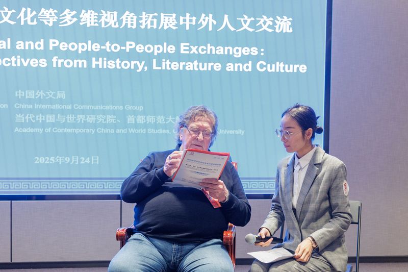 在主题为“基于历史、文学、文化等多维视角拓展中外人文交流”的专业沙龙上,中国社会科学院陈众议发言。