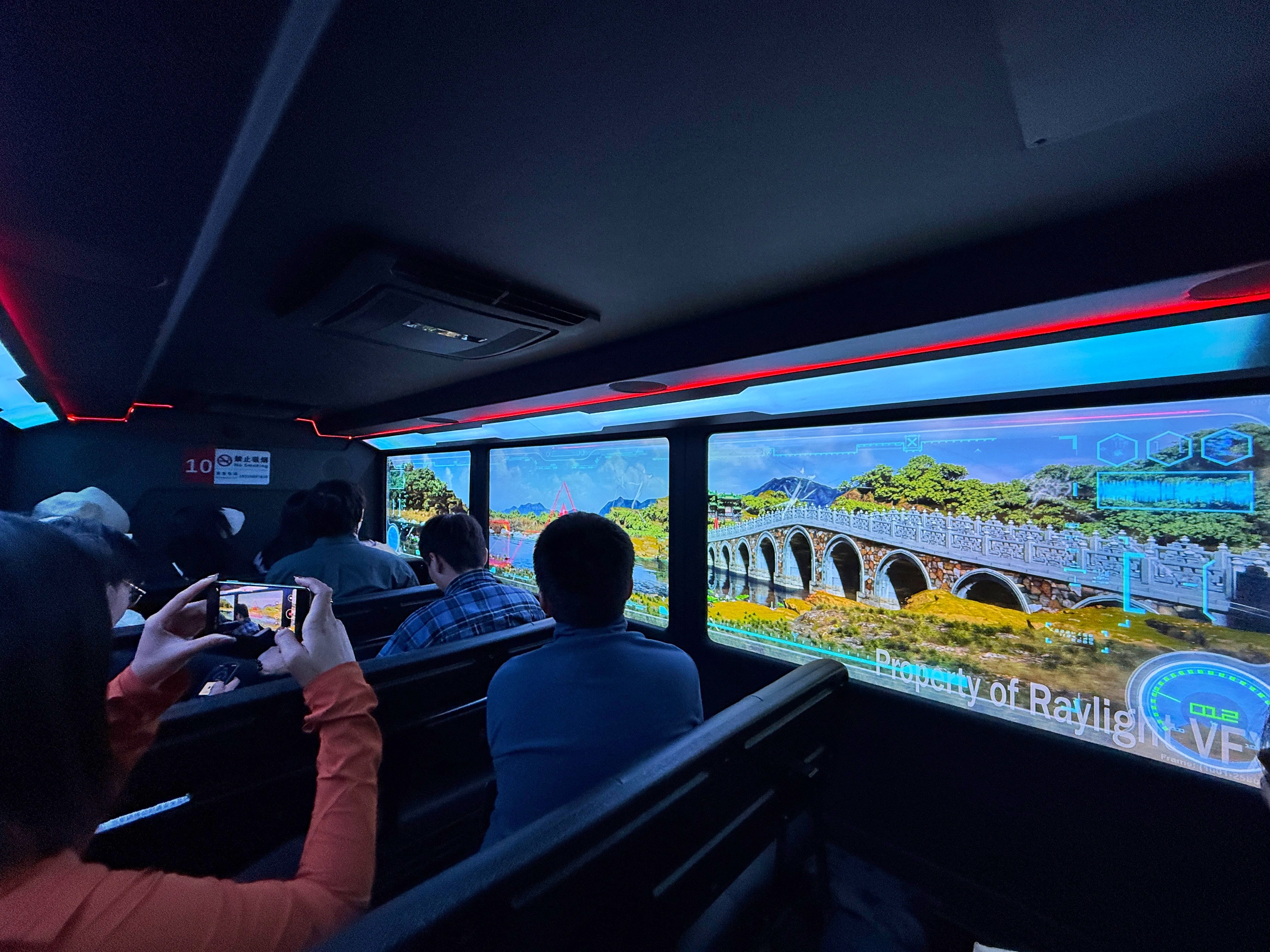 圆明园内,一辆辆“时光巴士”穿梭其中,游客坐在巴士内,透过车窗看到的不再是现实的场景,而是历史的平行时空。随着巴士的前行,车窗外场景不断变换。当乘客路过一块现实世界中的草坪时,车内语音提醒,这里曾经是皇子射箭、侍卫操练的地方,透过车窗向外看,XR技术将往日场景重现,与现实空间进行叠化、互动。