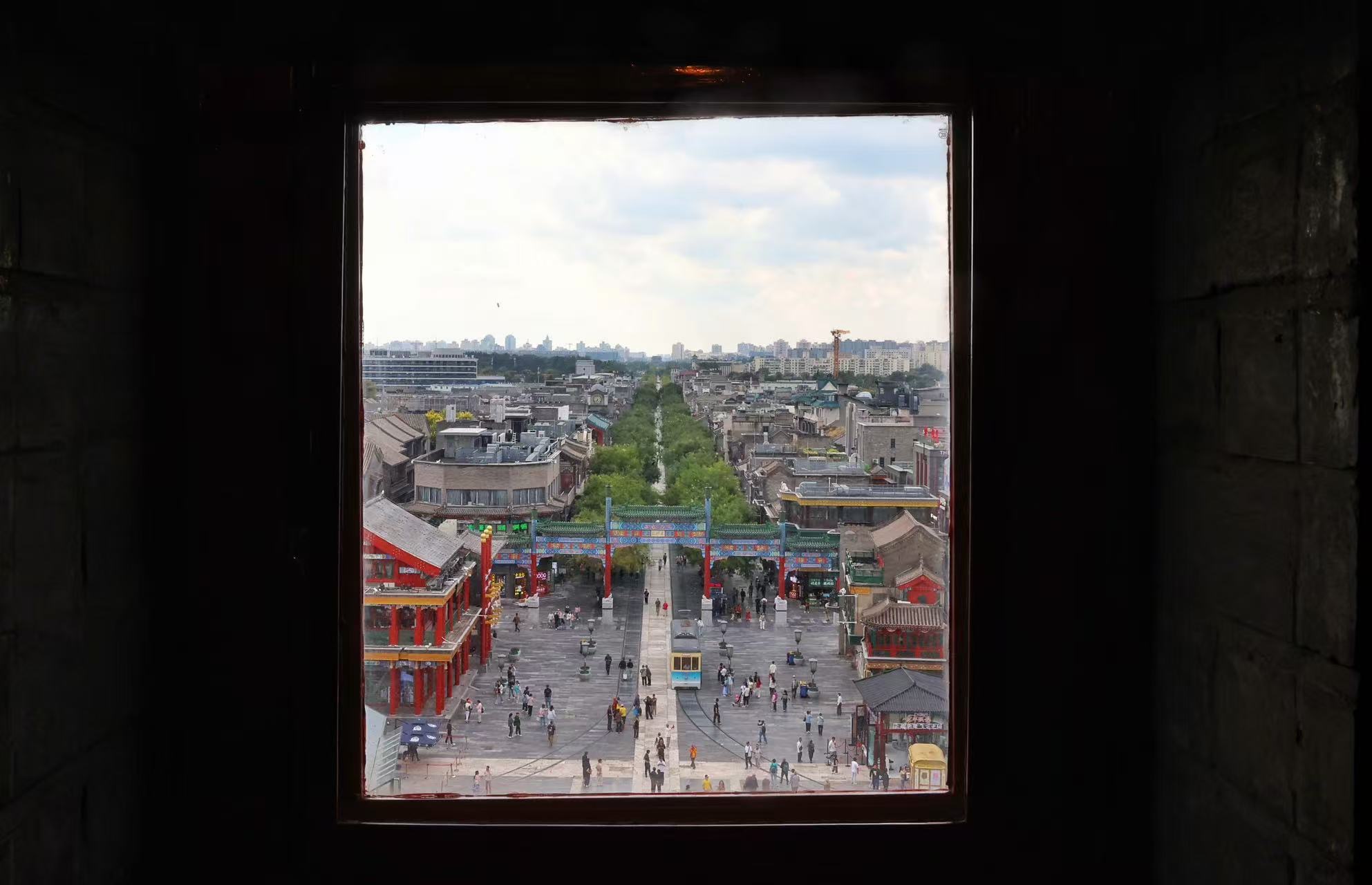 箭楼内的墙壁上分布着方形的箭窗,“在4楼最中心位置的箭窗处,可以俯瞰整个南中轴,感受前门大街历史风貌,同时也可以直接眺望永定门。”李思含介绍。