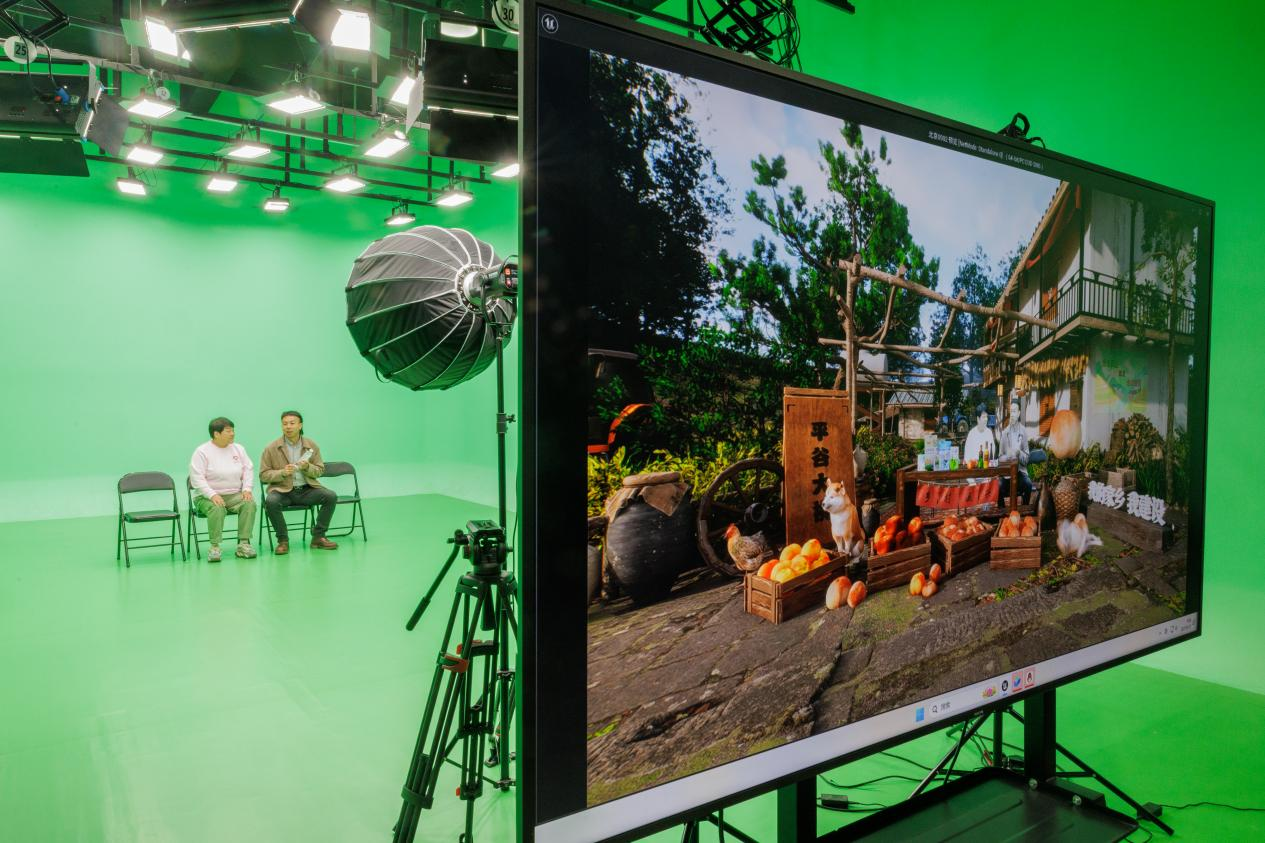 主播们现场推销农产品。
