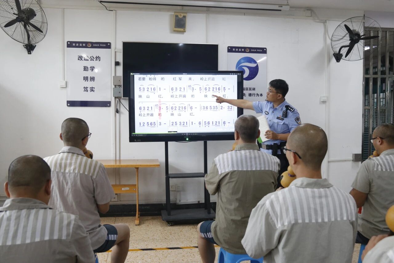如今,前进监狱已有110余名服刑人员加入葫芦丝学习兴趣小组。每到练习时间,高墙内便响起整齐灵动的旋律——有人紧盯乐谱,有人随节奏轻晃身体,指尖在葫芦丝上灵活跳跃。