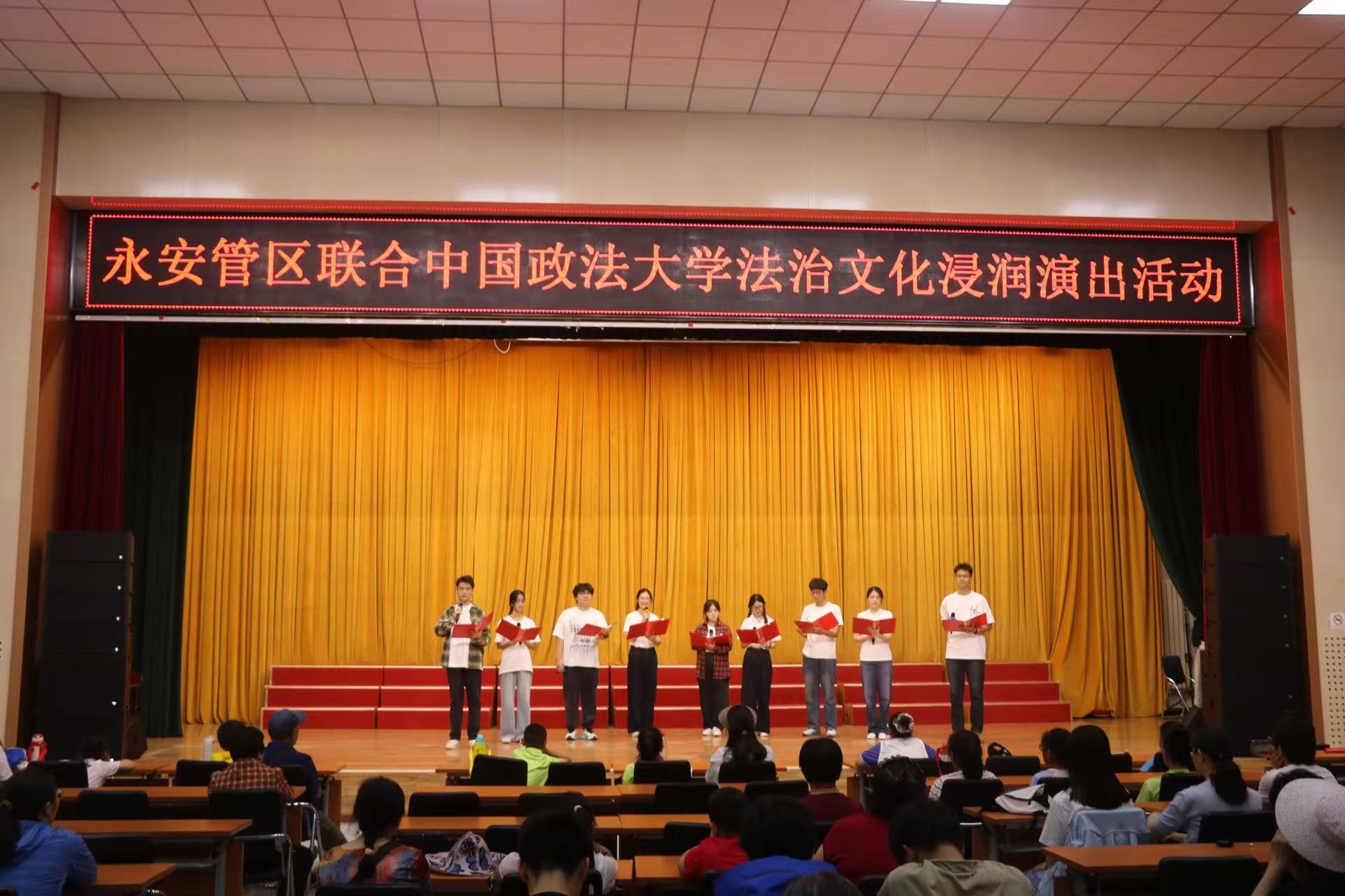于之会带领的校艺术团金话筒分团在昌平区城北街道进行法治文化浸润演出。受访者供图