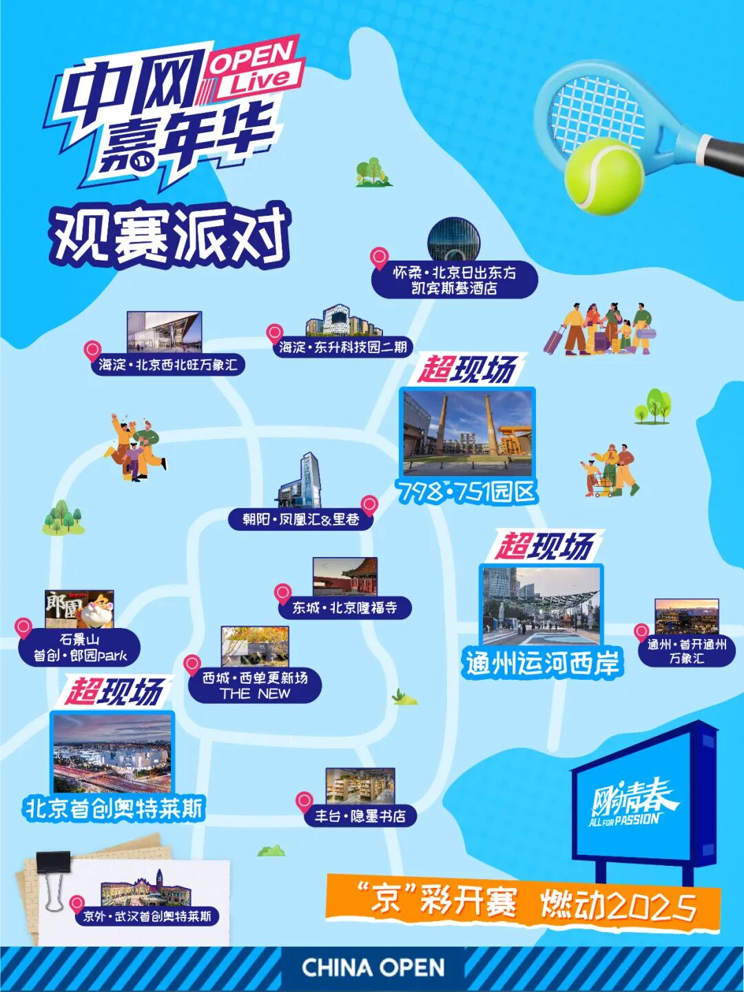 此外,从隆福寺到西单更新场,从西北旺万象汇到隐墨书店,9个特色观赛点遍布京城,形成全覆盖的观赛网络。武汉首创奥特莱斯也首次加入,将网球热情延伸至京外。