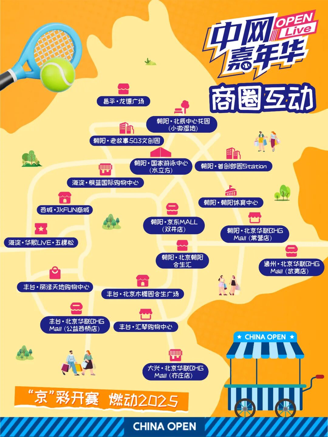 中网赛事信号将同步覆盖18家大型商圈,让市民在购物休闲之余也能感受网球魅力。