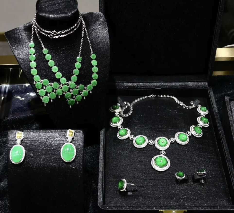 开江珠宝博览交易会现场,公众在兴致勃勃地挑选饰品。