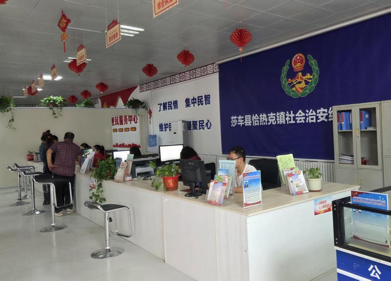 莎车县恰热克镇社会治安综合治理中心,群众在咨询相关事项。新京报记者 行海洋 摄