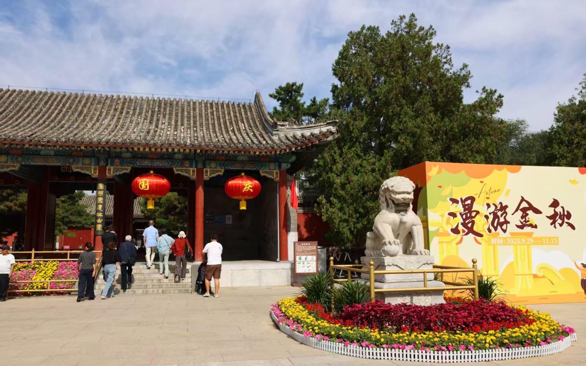 9月29日,2025年圆明园金秋游正式开幕,门口的国庆装饰已布置完毕。新京报记者 浦峰 摄