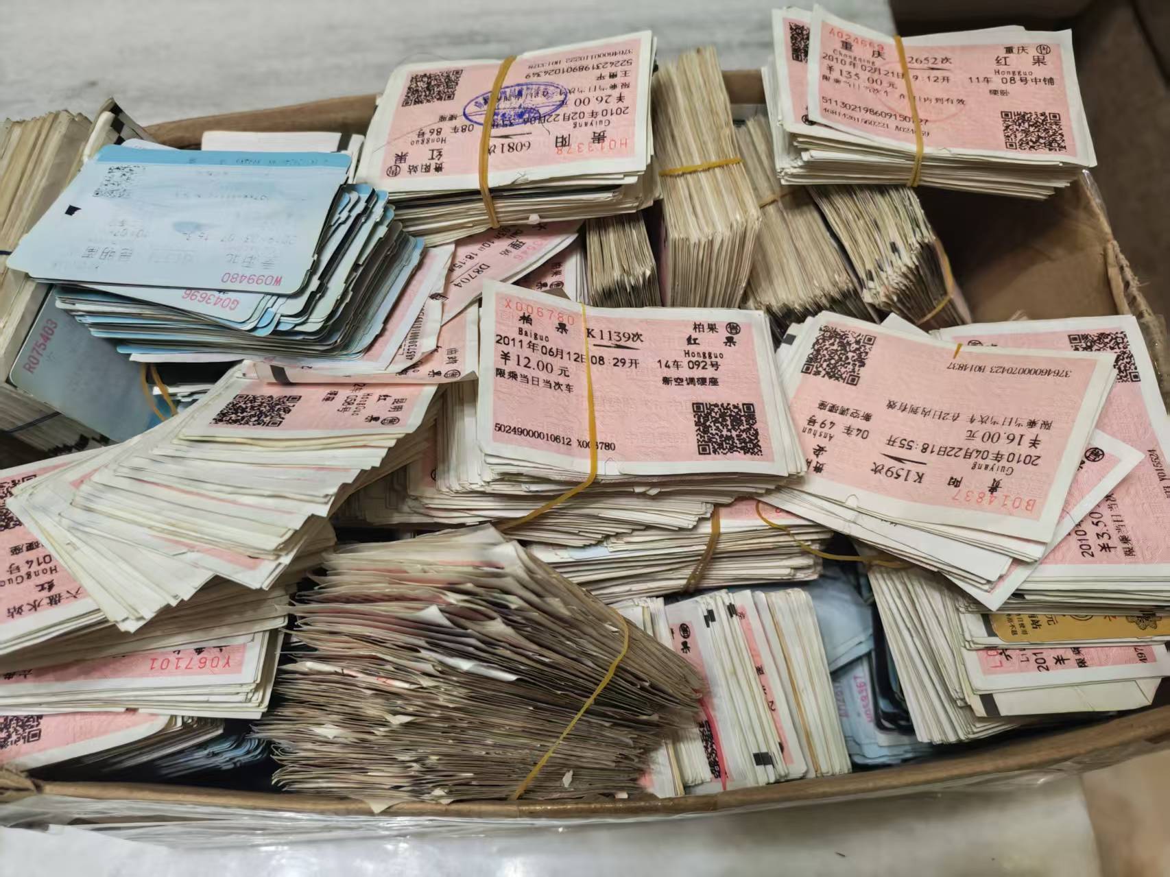 我收藏的车票数量庞大,难以逐张清点。2023年我曾称过一次重量,所有车票加起来约60公斤,少说也有几万张。
