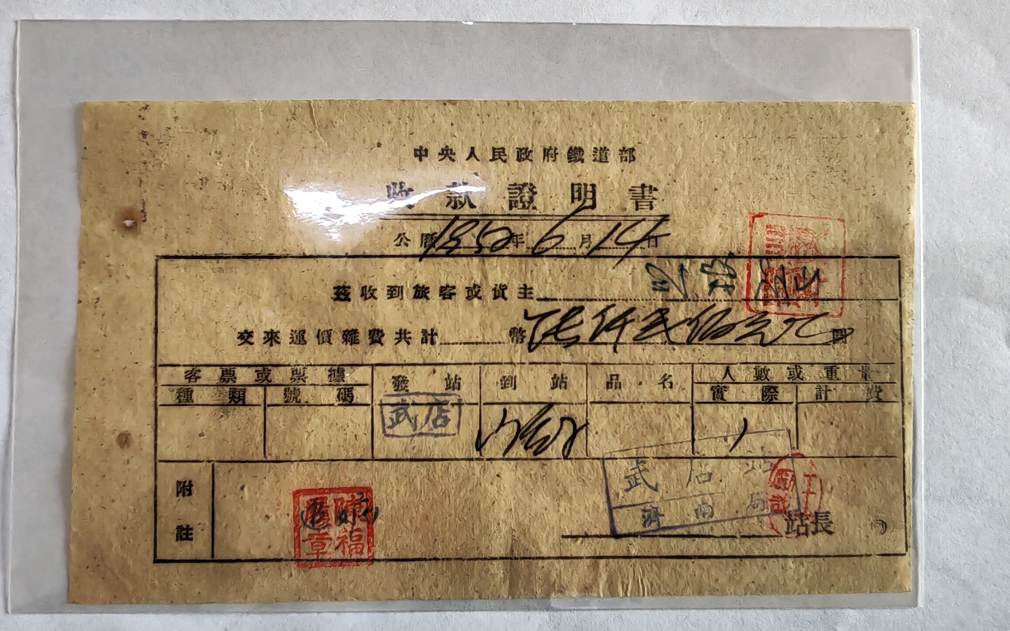 我尤其钟情于老车票,因为它们承载着时代的印记。新中国成立初期,主流的是手写票和硬板票,二者使用年代相近,只不过硬板票主要由车站工作人员出具,手写票则由列车员填写。