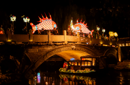 黄金周期间每日夜间,小镇还将上演由鱼灯、龙灯组成的“灯河巡游”,呈现一场光影交织的东方浪漫。