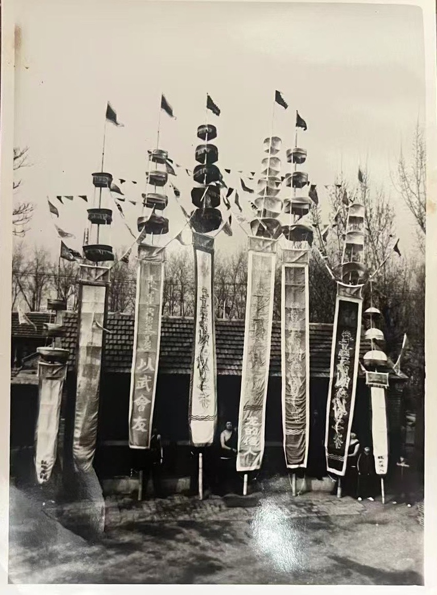 “常氏中幡”在龙潭湖庙会表演过牌楼。受访者供图