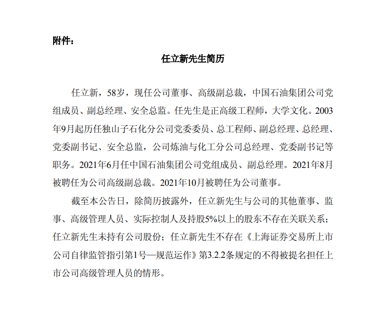 中国石油:董事会同意聘任任立新担任公司总裁