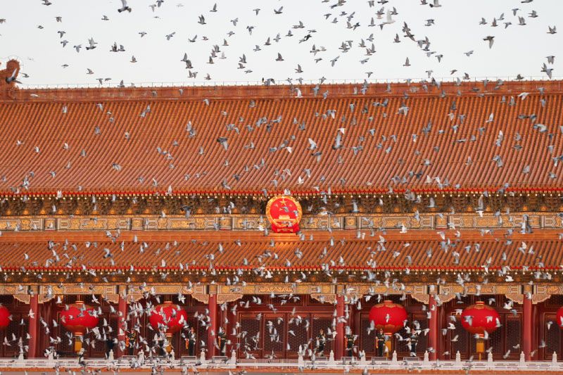 天安门前,和平鸽腾空而起,祝福祖国76周年华诞!