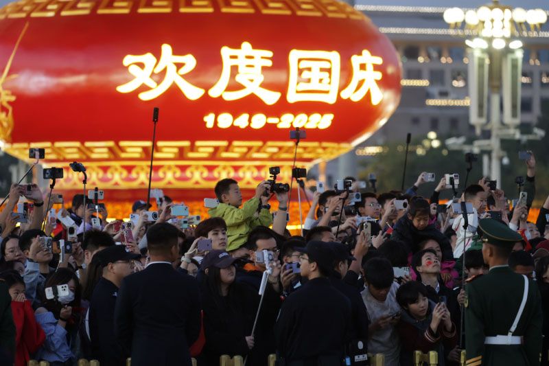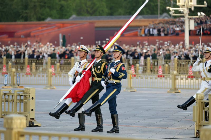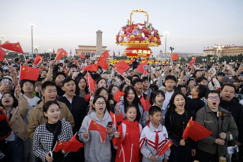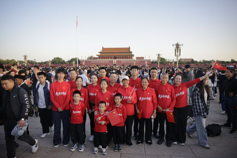 10月1日,中华人民共和国成立76周年,天安门广场举行2025年国庆升国旗仪式。来自全国各地的人们汇聚北京天安门广场,见证这庄严隆重的升国旗仪式。6时许,国旗护卫队队员迈着雄健的步伐,穿过金水桥缓缓走来,五星红旗被护送到天安门广场。6时11分,伴随雄壮的《义勇军进行曲》,五星红旗在晨光中冉冉升起。