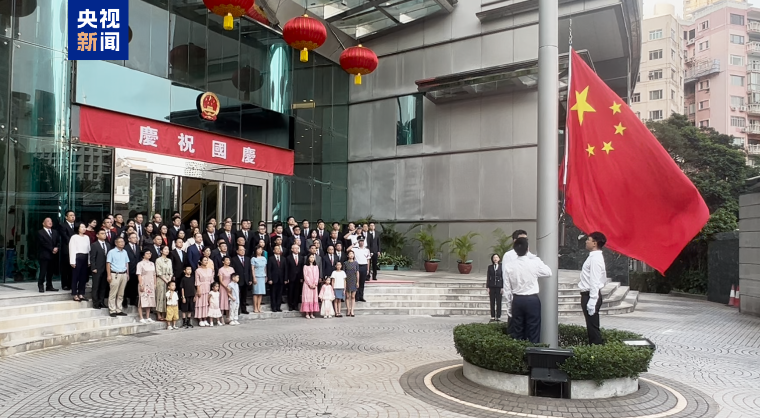 △10月1日7时,外交部驻香港特别行政区特派员公署举行升旗仪式,庆祝中华人民共和国成立76周年。