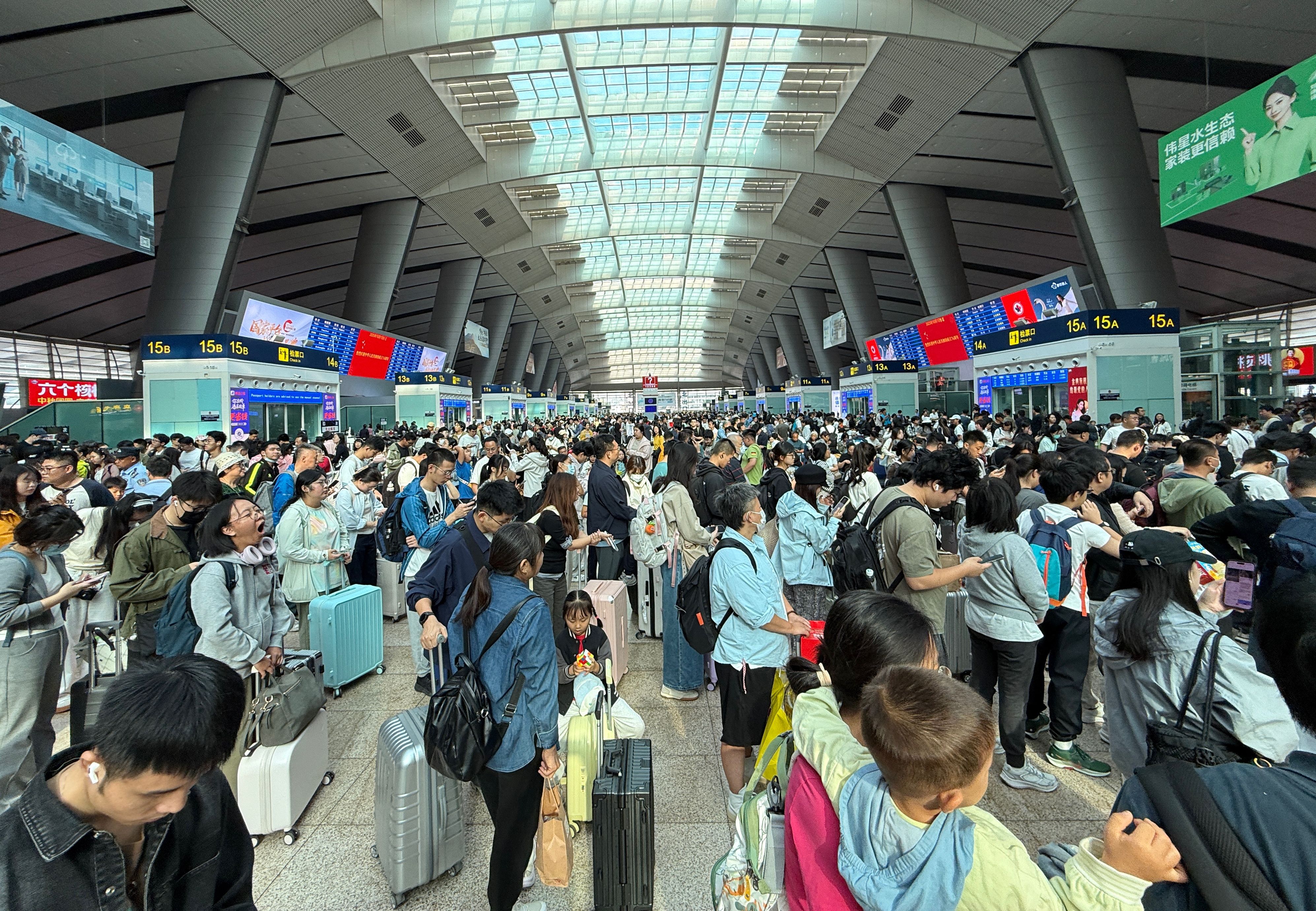 记者从北京南站了解到,2025年铁路国庆中秋假期运输时间为9月29日至10月10日,为期12天,北京南站预计发送旅客252.6万人次,日均21.05万人次,同比增长13.5%,客流持续高位运行。