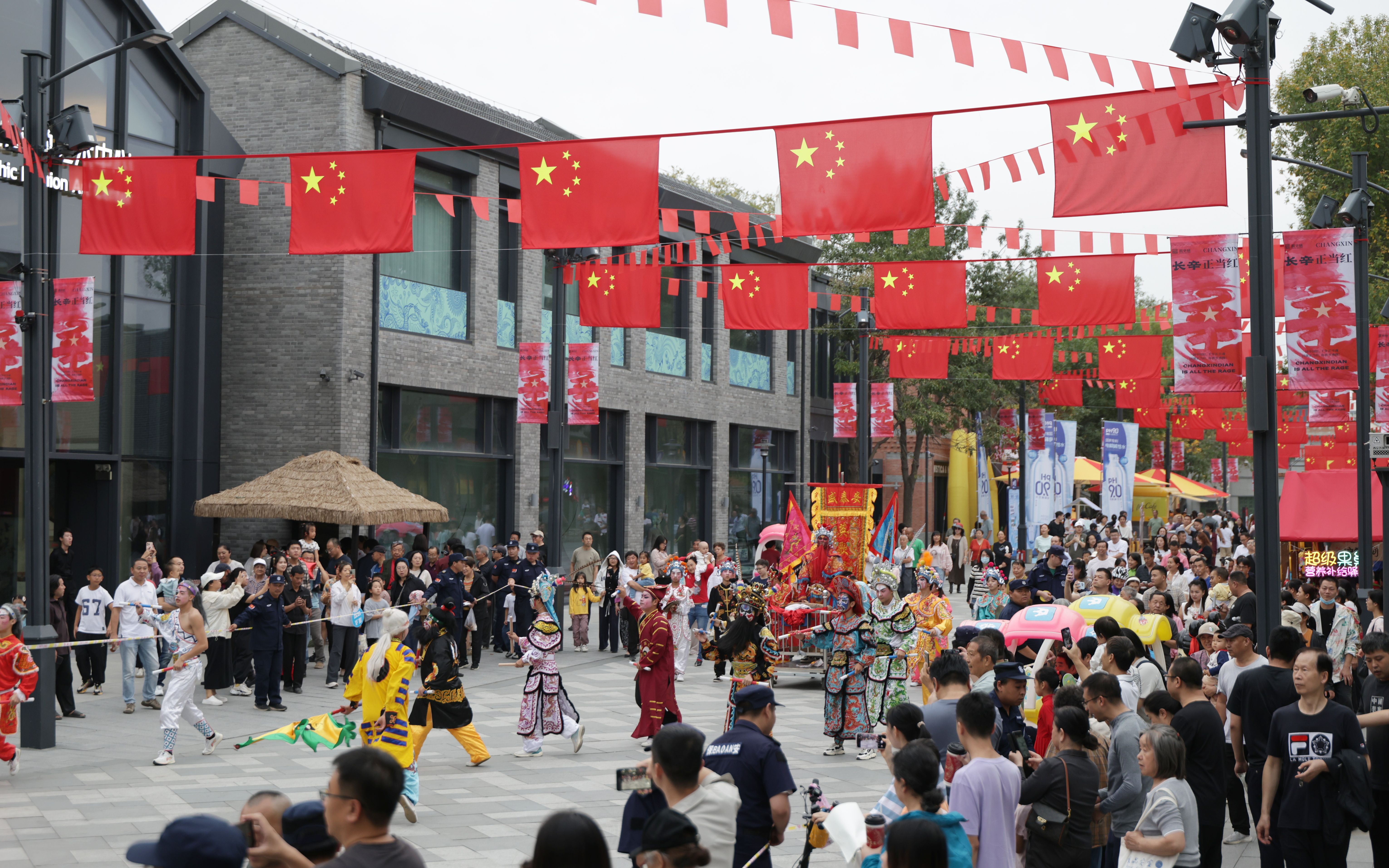 10月1日,长辛店国潮时尚街区化身“国旗大道”。新京报记者 陶冉 摄