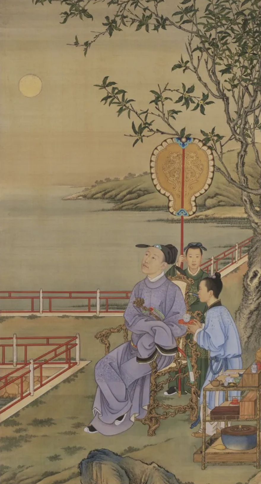 清人画《弘历观月图轴》。《故宫生活志》插图