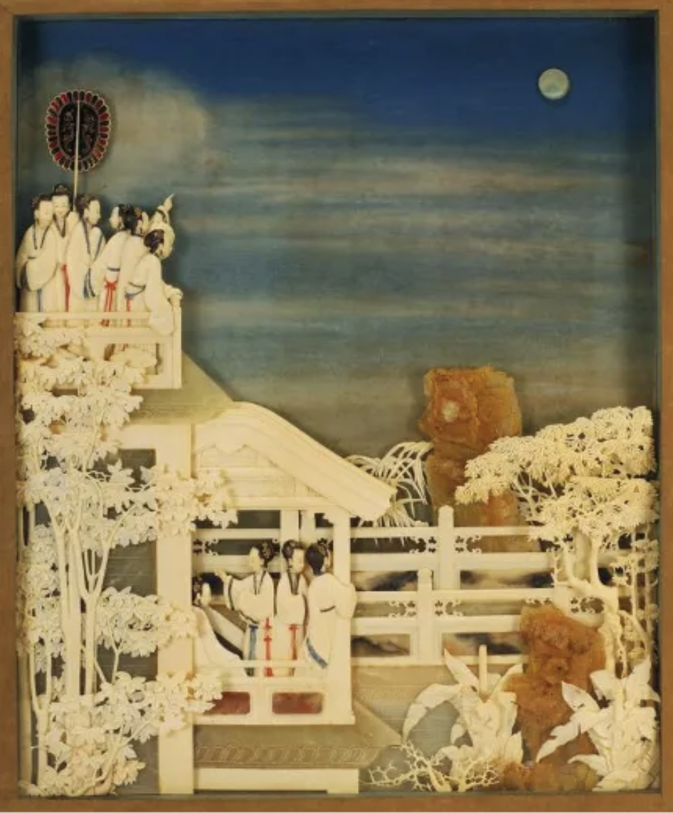 故宫藏象牙雕《月曼清游图》之“琼台玩月”。《故宫生活志》插图