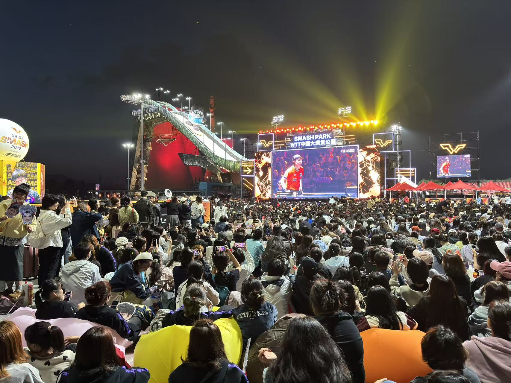在WTT中国大满贯公园内,很多没有买上现场比赛门票的球迷们来到这里,看着大屏幕的直播,同样过足观赛瘾。市民王先生是位球迷,这个假期他也凑热闹到大满贯公园和大家一起呐喊。“大满贯公园买票就能进,没有座位号,所以有的球迷早上七点多就在场外等开门,这样能抢一个好位置。”王先生说,与在家里看电视转播不同,在大满贯公园看比赛氛围感更足,“看到精彩球,大家一起欢呼,看到球出界或者没过网,现场也是一阵遗憾。这种感觉特别好,大家在这里成了同道中人。”