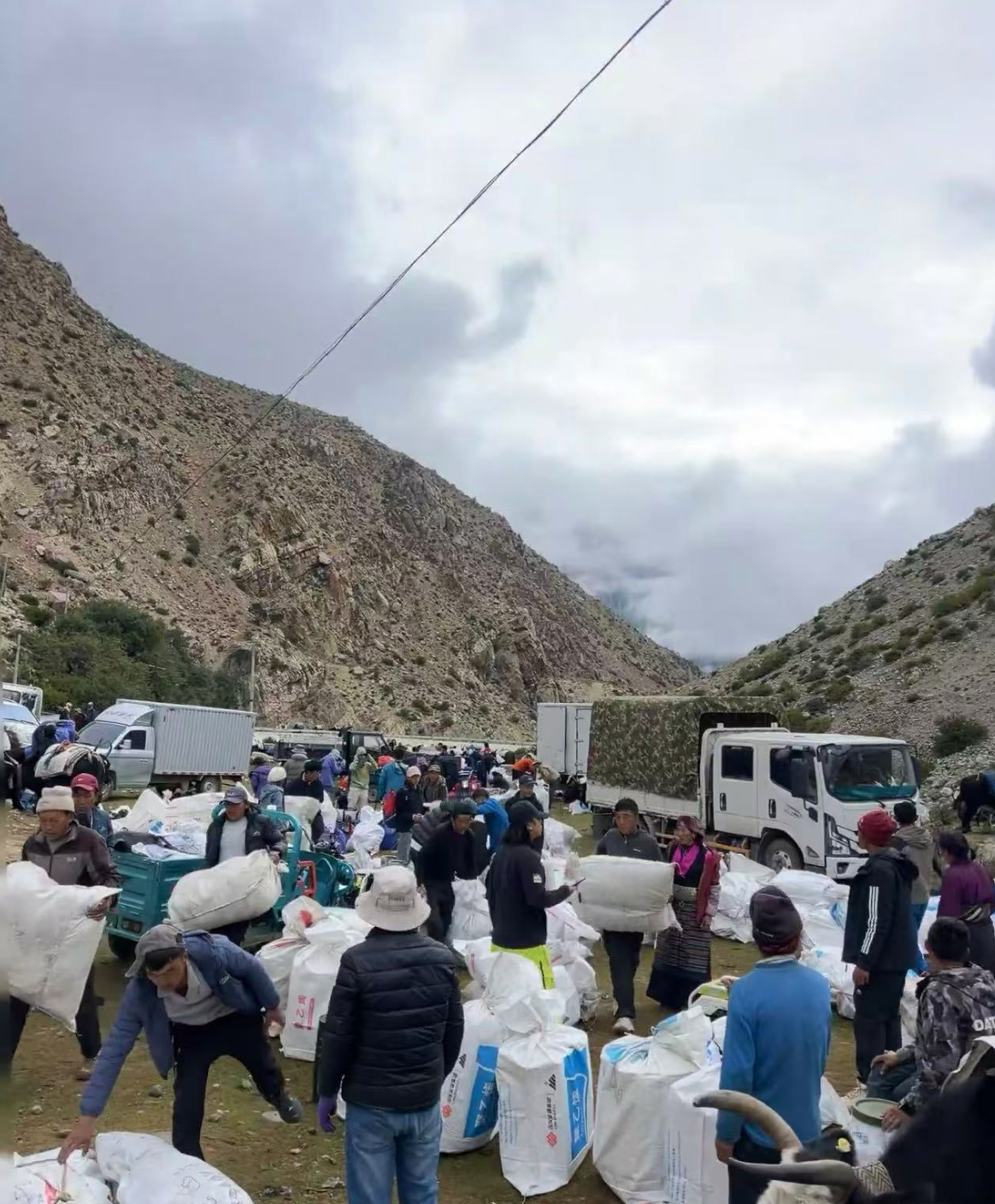 9月29日,西藏日喀则市定日县曲当乡珠峰东坡嘎玛沟进山处一片嘈杂。受访者供图