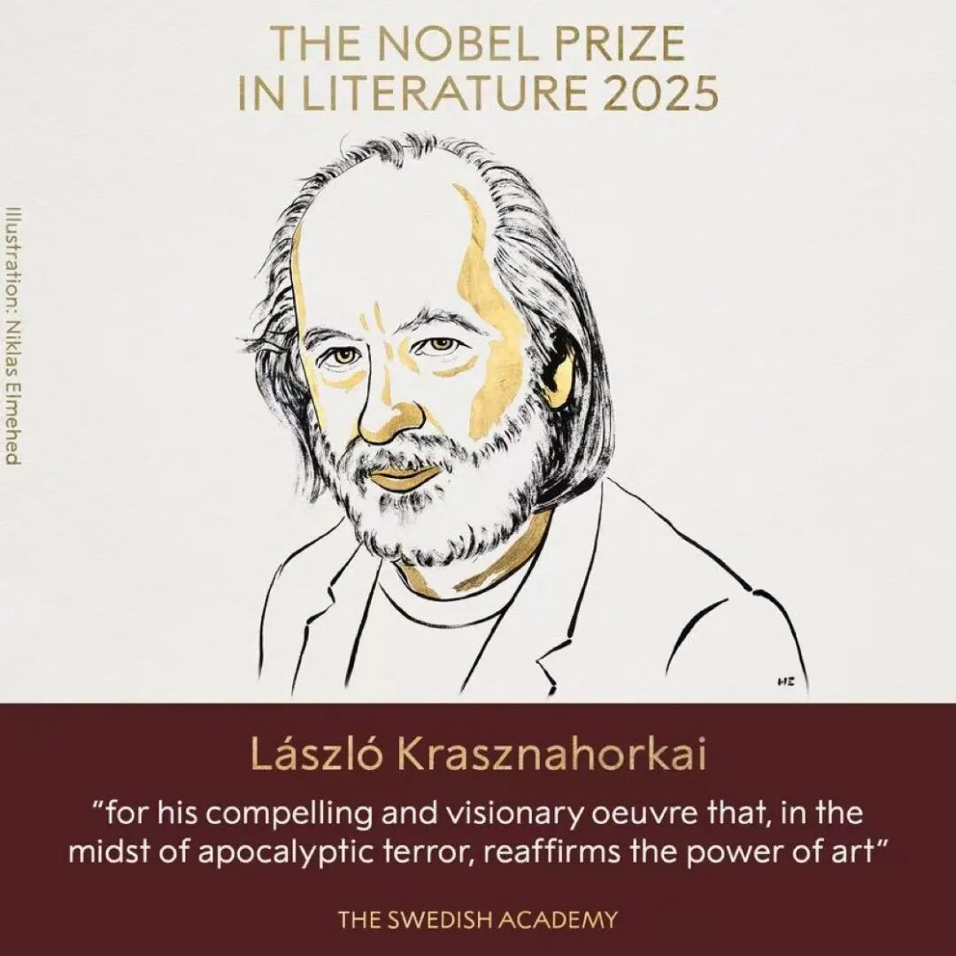 瑞典文学院在斯德哥尔摩宣布,将2025年诺贝尔文学奖授予匈牙利作家克劳斯诺霍尔卡伊·拉斯洛。