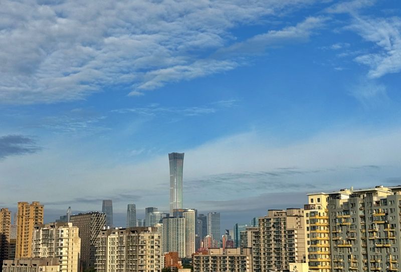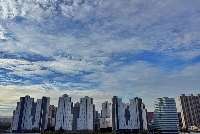 10月10日,蓝天白云下的CBD。随着降雨停歇,北京天空褪去阴沉,阳光穿透云层洒落大地。北京市气象台10日9时发布 :今天白天多云转阴,下午有小到中雨,北转南风二三级,最高气温15℃;夜间小到中雨转阴,南转北风一二级,最低气温10℃。今天上午降雨暂时停歇,下午到夜间仍有降雨,请注意防雨和添衣保暖,驾车注意交通安全。
