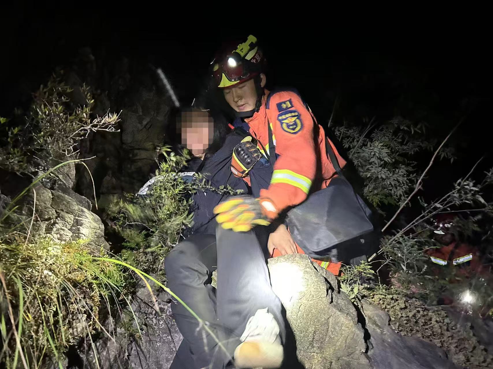 9月26日2时50分,经过近11小时的艰难营救,3名被困人员终于被安全护送至山下安全地带,消防员对3名被困人员进行户外安全提示后整队返回。