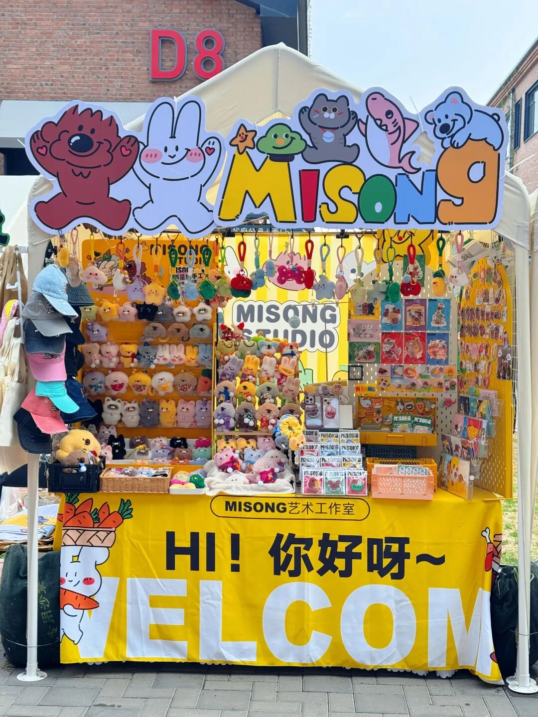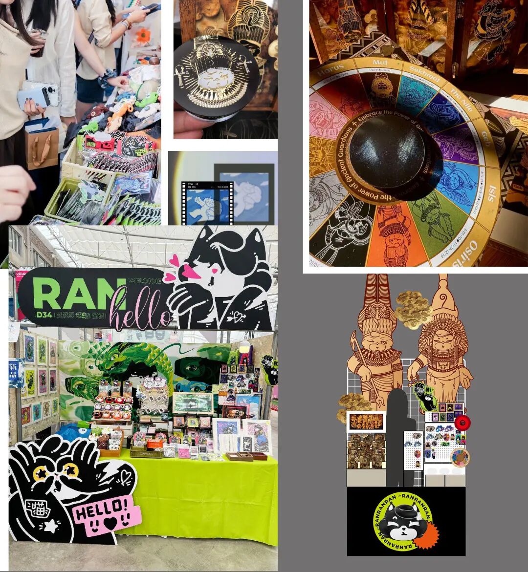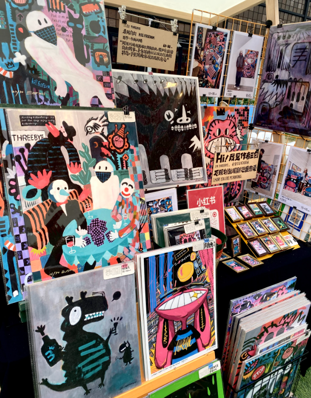 “热烈孤独”系列插画、“荒诞生活”系列周边、“散步在路旁”纯手作玩偶。