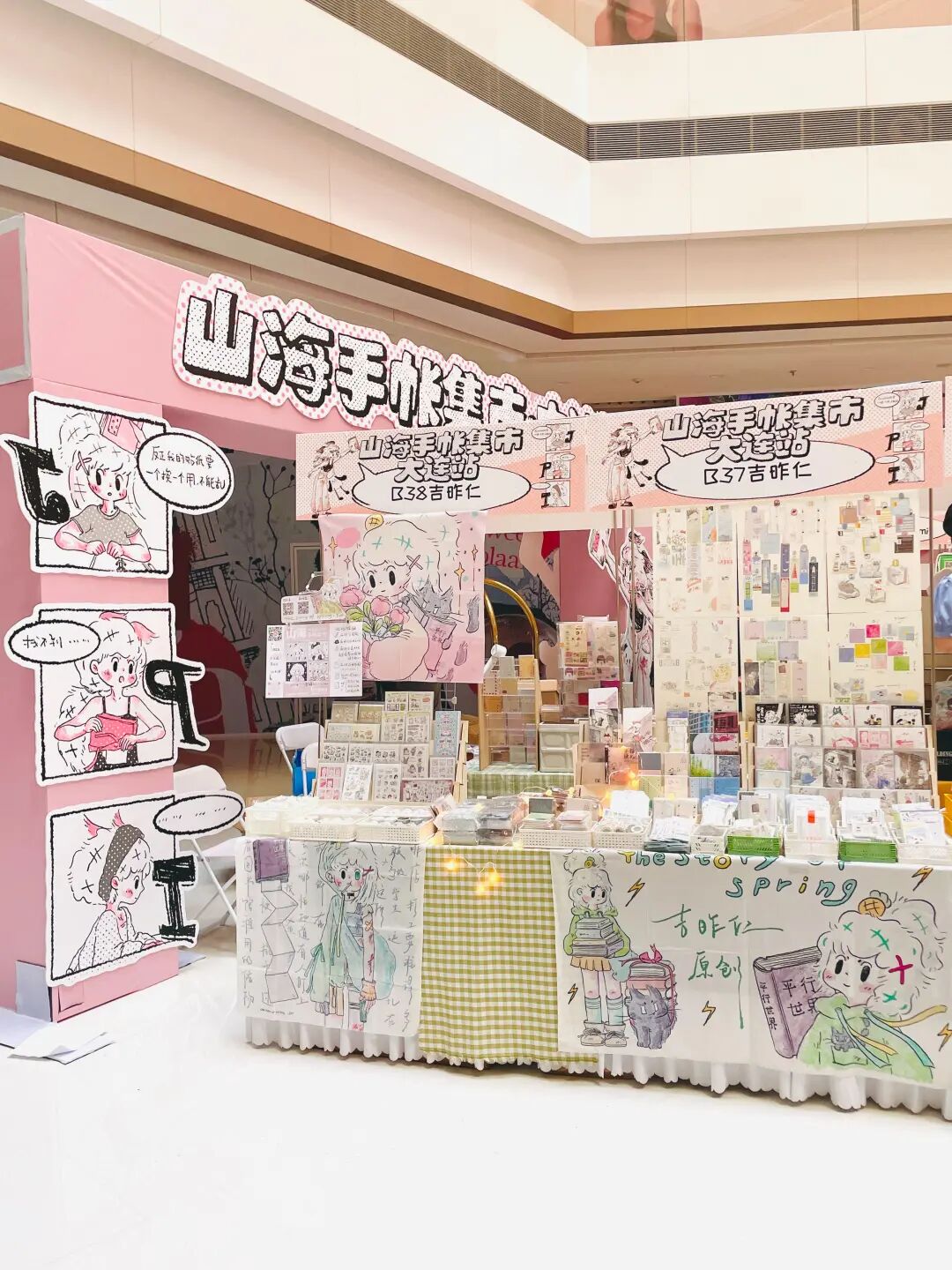 关注章,消费章,现场签绘,贴纸满五送一,明信片买五送一,冰箱贴买三送一。