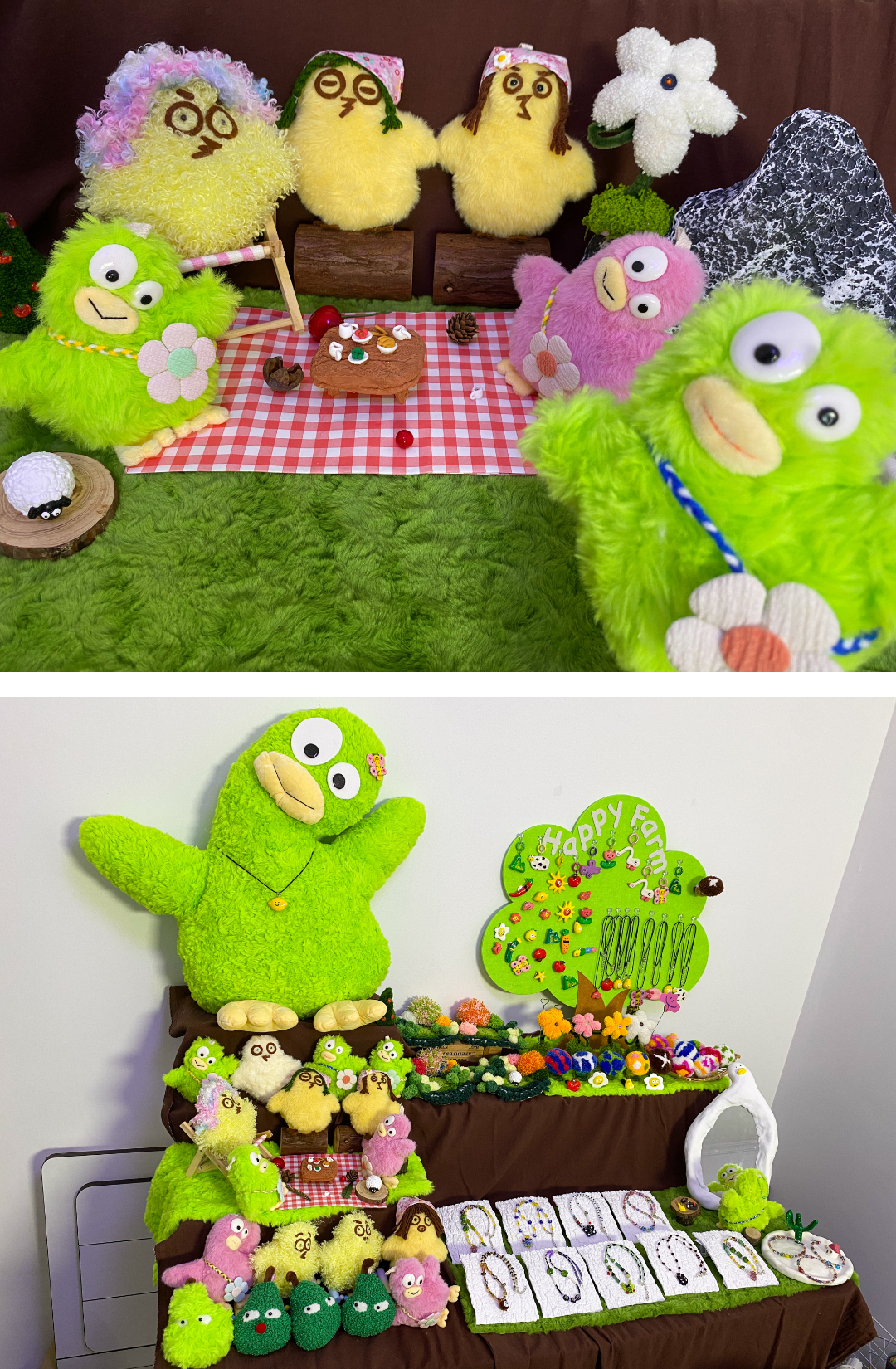 手工毛绒小家族:软萌小狗兔兔、慵懒猫咪、憨态小熊、俏皮青蛙及云朵、星星、骨头、花花、苹果、萝卜、芒果等伙伴并肩,用蓬松毛发质感与柔和多巴胺的色彩传递温暖,每一只小可爱都是独一无二的。