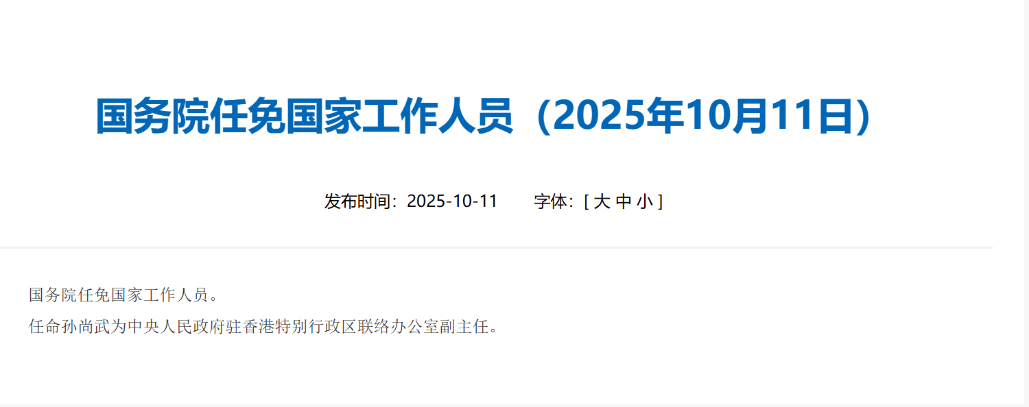 任命孙尚武为中央人民政府驻香港特别行政区联络办公室副主任。