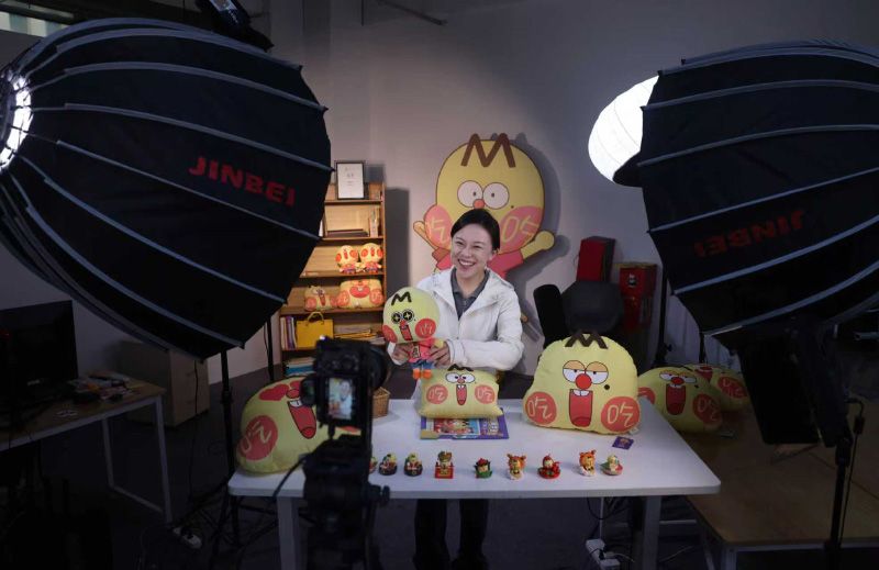 HICOOL产业园内的北京重力聿画影视文化有限公司,一场直播正在进行。公司曾在2022年HICOOL大赛文化创意赛道获得优胜奖。该动漫IP“我是不白吃”在全网拥有超8000万粉丝。