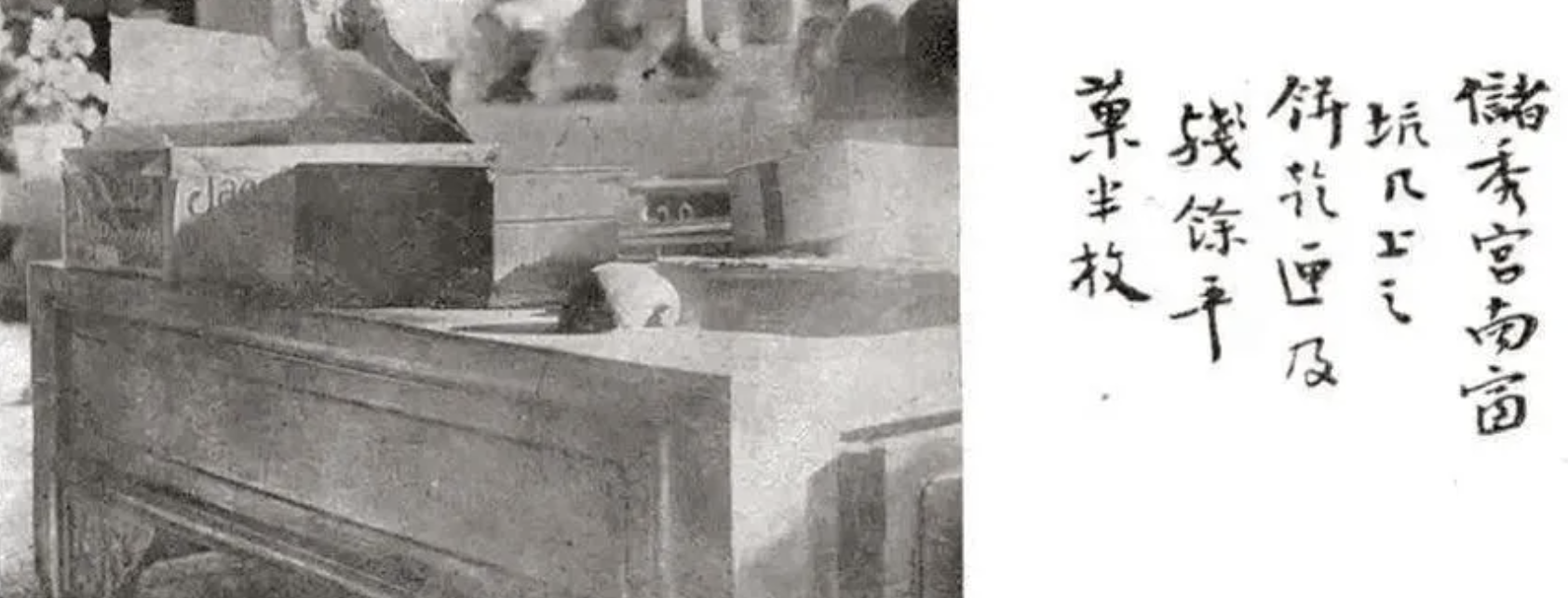 储秀宫炕几上放着的半个溥仪咬过的苹果,照片出自陈万里拍摄的摄影集《民十三之故宫》。