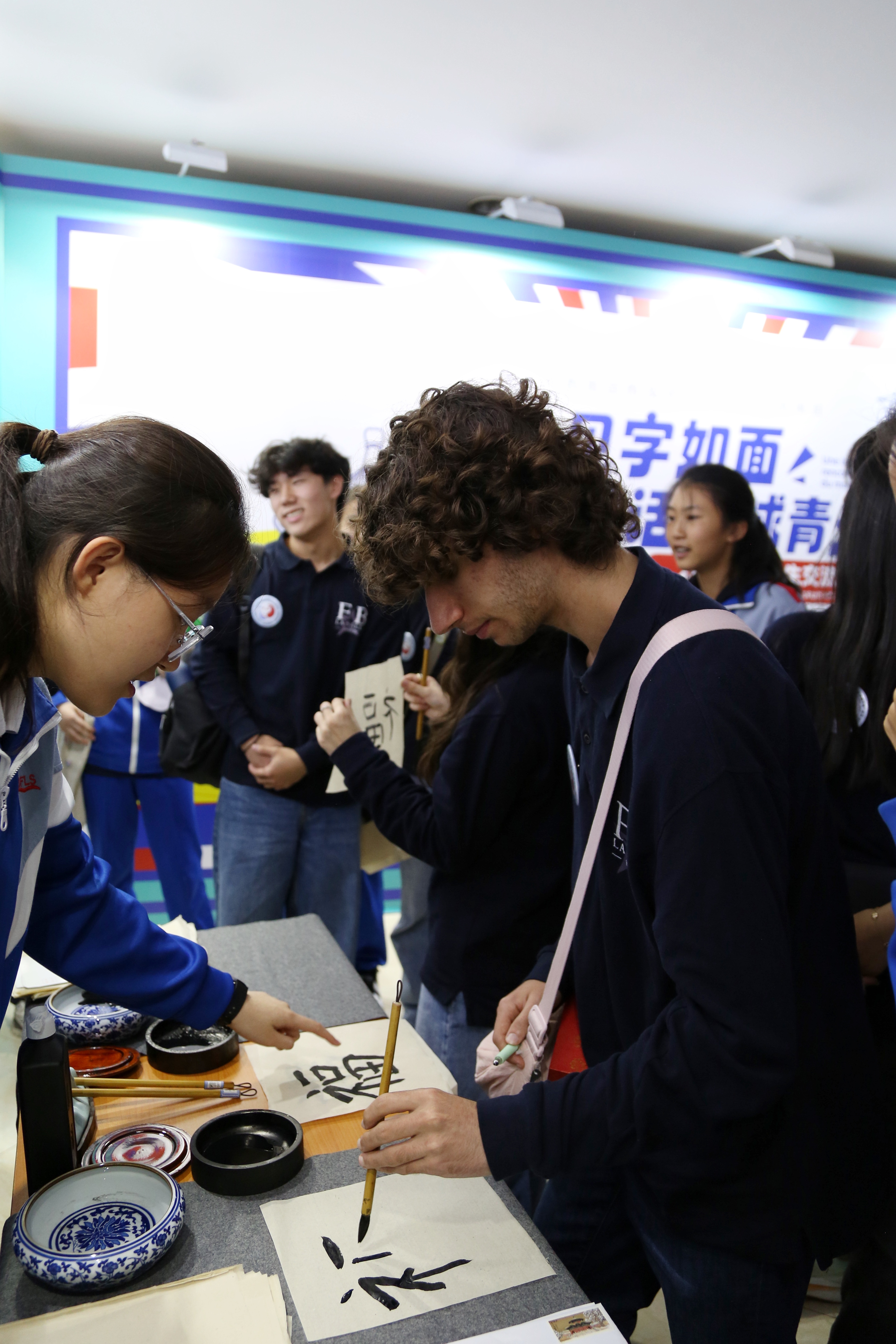 法国学生雨果兴奋地展示他刚写好的“福”字。“我懂一点中文,知道这个字象征好运和幸福,”他笑着说,“这次来北京,我不仅登上了长城,还结识了真诚的朋友。”