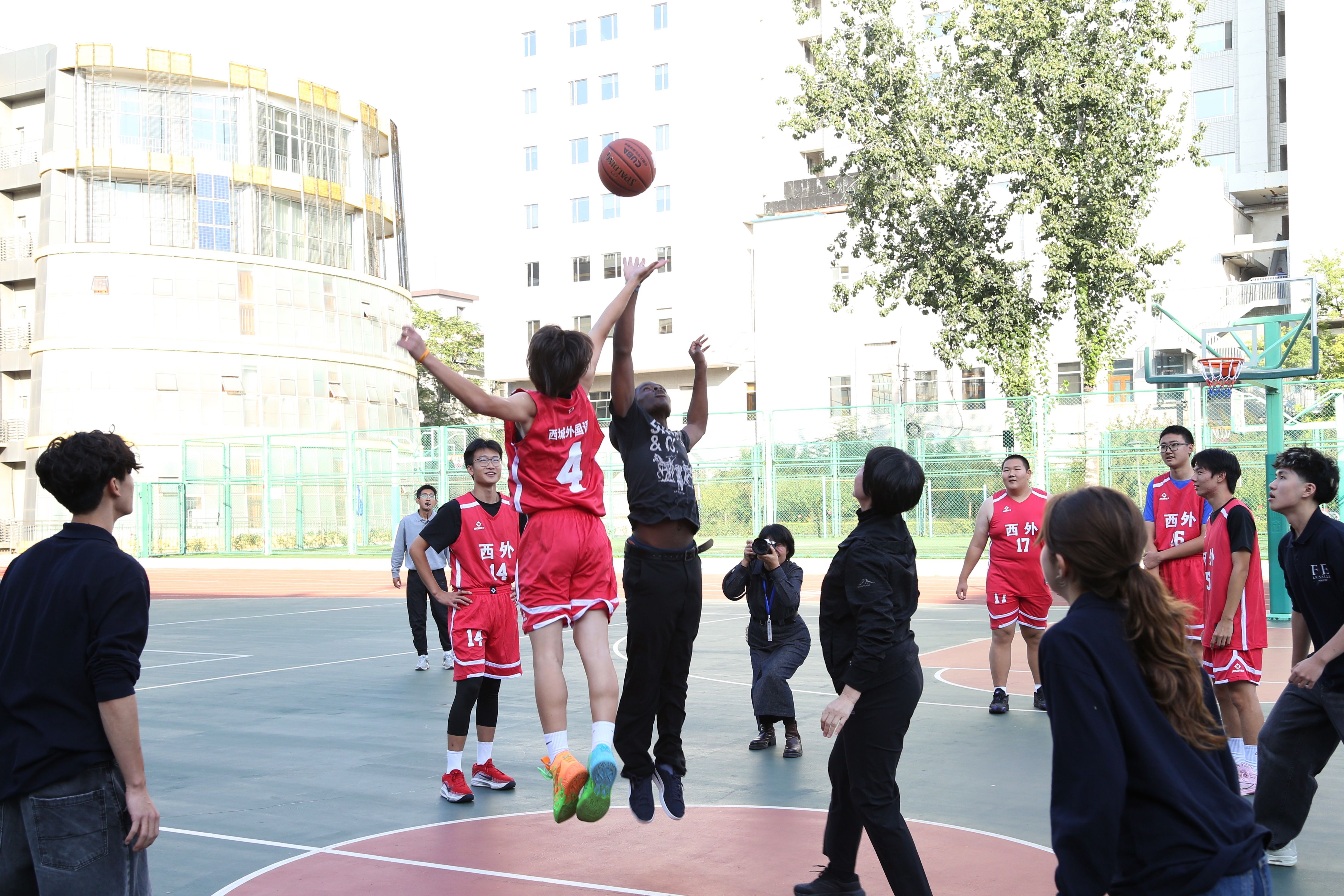 来自法国的学生们和西城外国语学校的学生们一起进行篮球比赛。北京教育融媒体中心供图