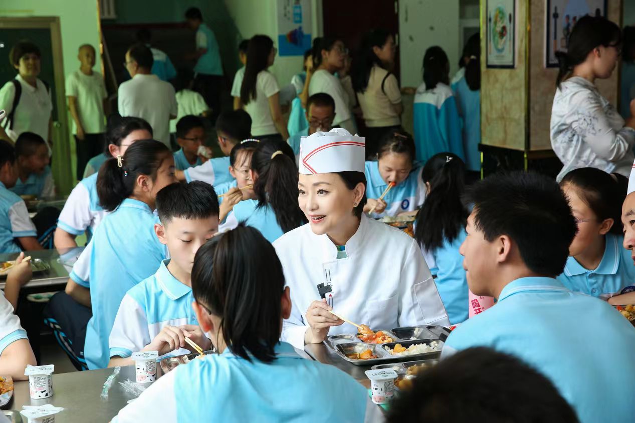 2024年,杨澜在“拥抱·乡村美育计划”活动中变身“食堂阿姨”。 受访者供图