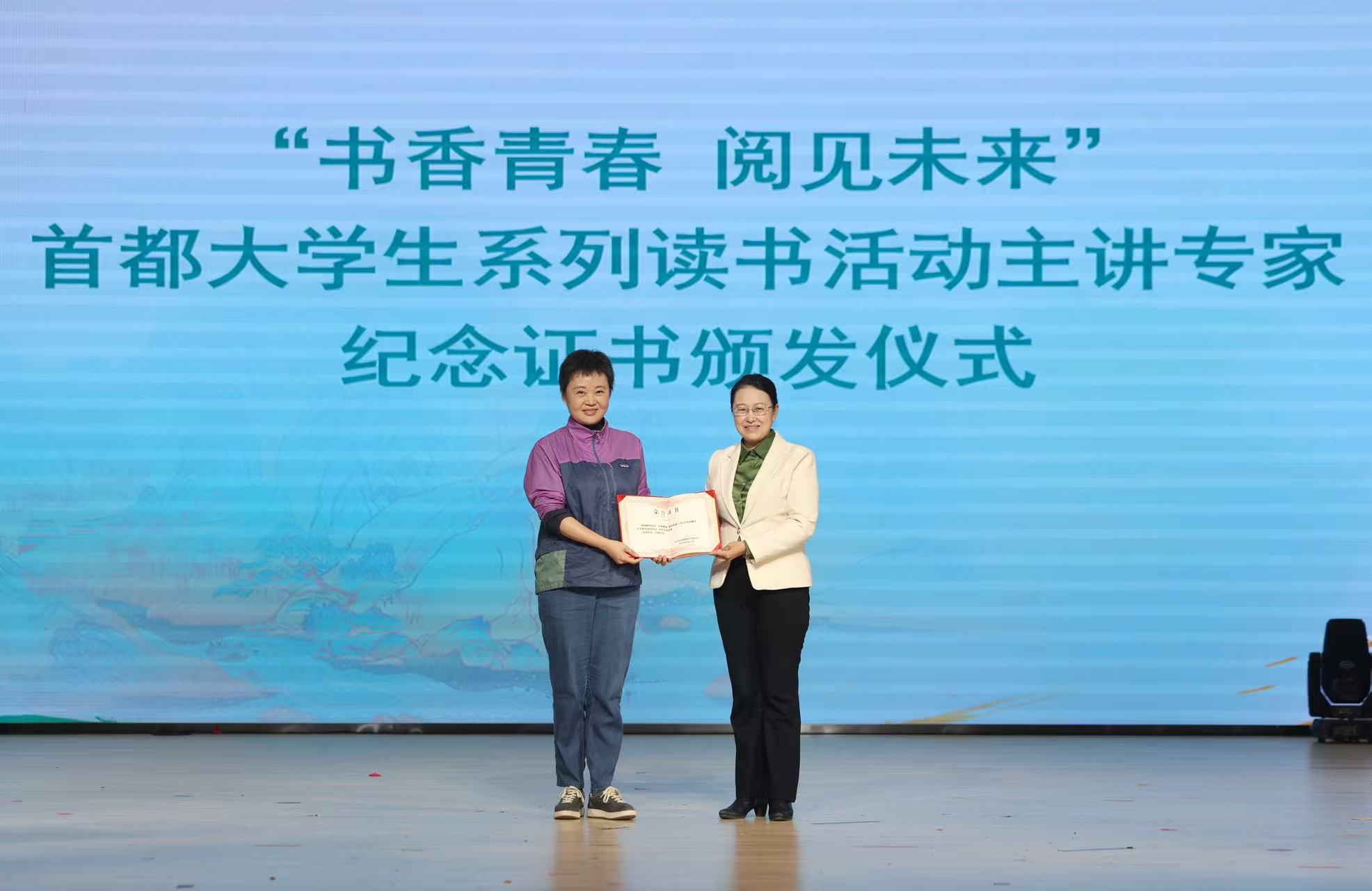 这是北京市委教育工委主办,新京报社、对外经济贸易大学承办的“书香青春 阅见未来”2025年首都大学生系列读书活动之“文化名家进校园”活动。当日,周晓枫以“阅读有趣又有力”为主题,与来自首都13所高校的数百名师生代表分享了她的阅读感悟,也一一解答了学生们在阅读与写作中遇到的种种困惑。