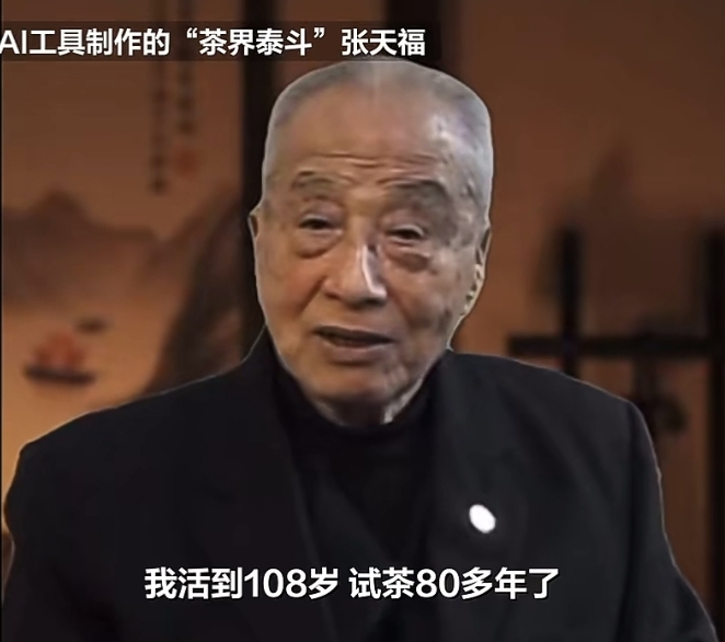 ▲茶界泰斗张天福被茶企用AI“复活”并为其代言,引发了社会争议。图/新京报我们视频截图