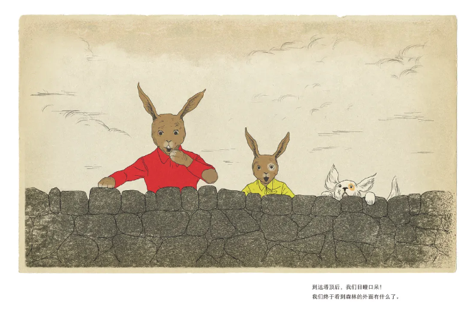 怎么来建造塔楼呢?兔子爸爸用麦子磨成面粉,用面粉做成面包,用面包换来石头,用石头建成塔楼,在塔楼望向外面的世界……