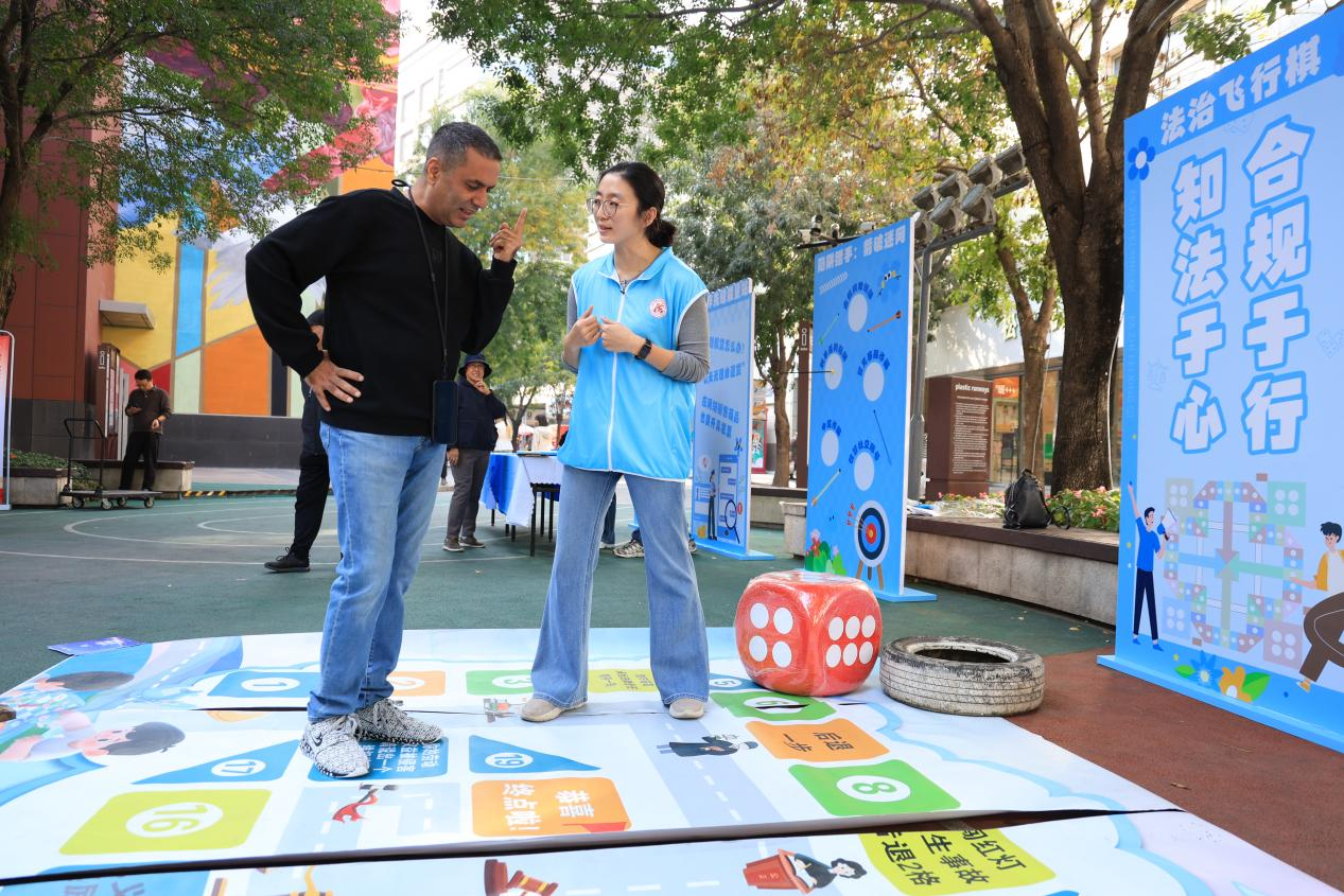 外籍居民参与“法治飞行棋”互动。新京报记者 王远征 摄
