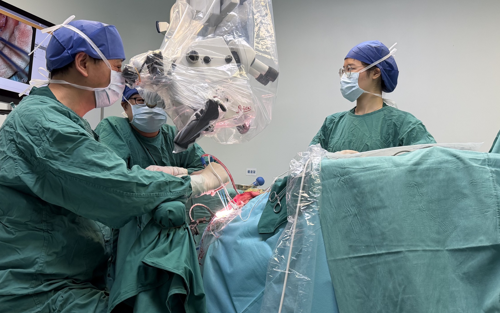 接下来就是神经外科的关键任务了,要精准地“拆除”颅内“炸弹”。麻醉科鄢建勤教授团队制定了精细的个体化麻醉方案,小心翼翼地维持着患者心脏功能和脑部血液供应的平衡。在麻醉团队的全力保障下,由多学科组成的手术团队开始了手术。他们凭借精湛的显微外科技术,在显微镜下细致分离肿瘤与周围正常脑组织,精准保护关键血管与神经结构。经过几个小时的努力,这个巨大颅内肿瘤最终被完整切除,所有重要神经功能得以完好保留。