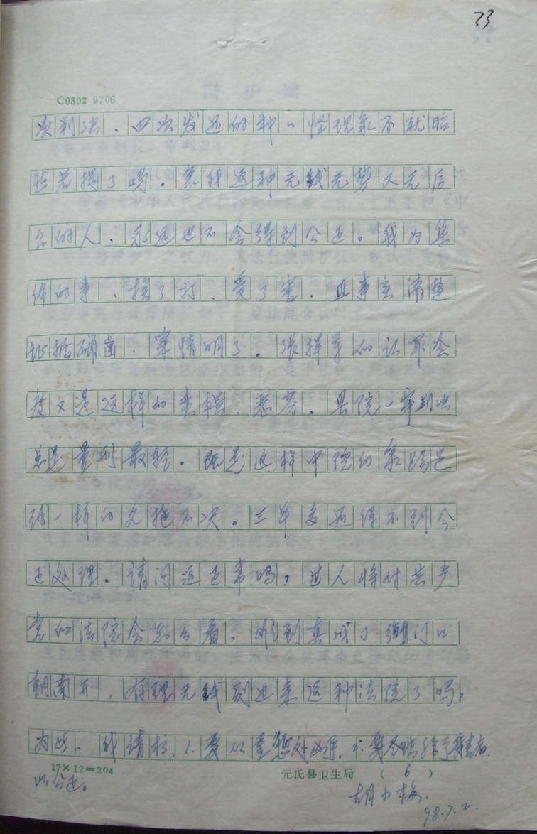 1998年胡小梅写给法院的申诉书,其中提到对案件久拖不决的看法。受访者供图