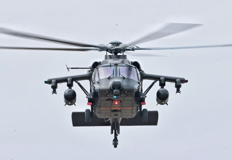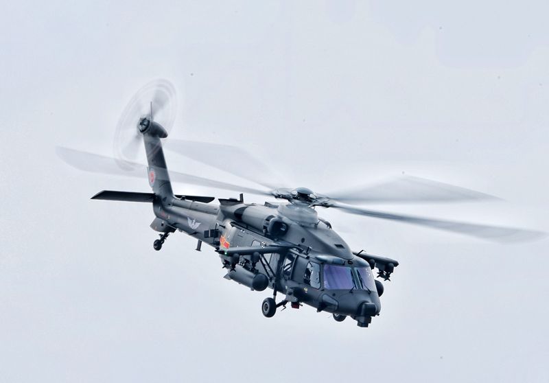 直-20T的“T”代表“突击”,直-20T机身两侧比直-20多了短机翼,短机翼下面可以挂装副油箱和多种弹药,兼具火力打击和机降运输能力。