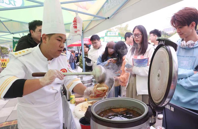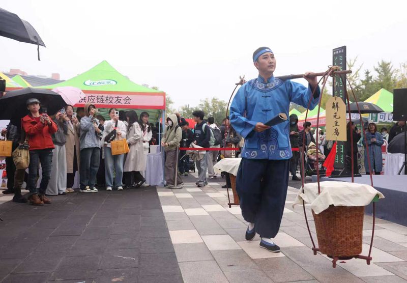 校友食品文化节上,原创非遗主题曲剧《王致和》携“曲剧快闪”现身,为校庆添彩,成为现场一大亮点。