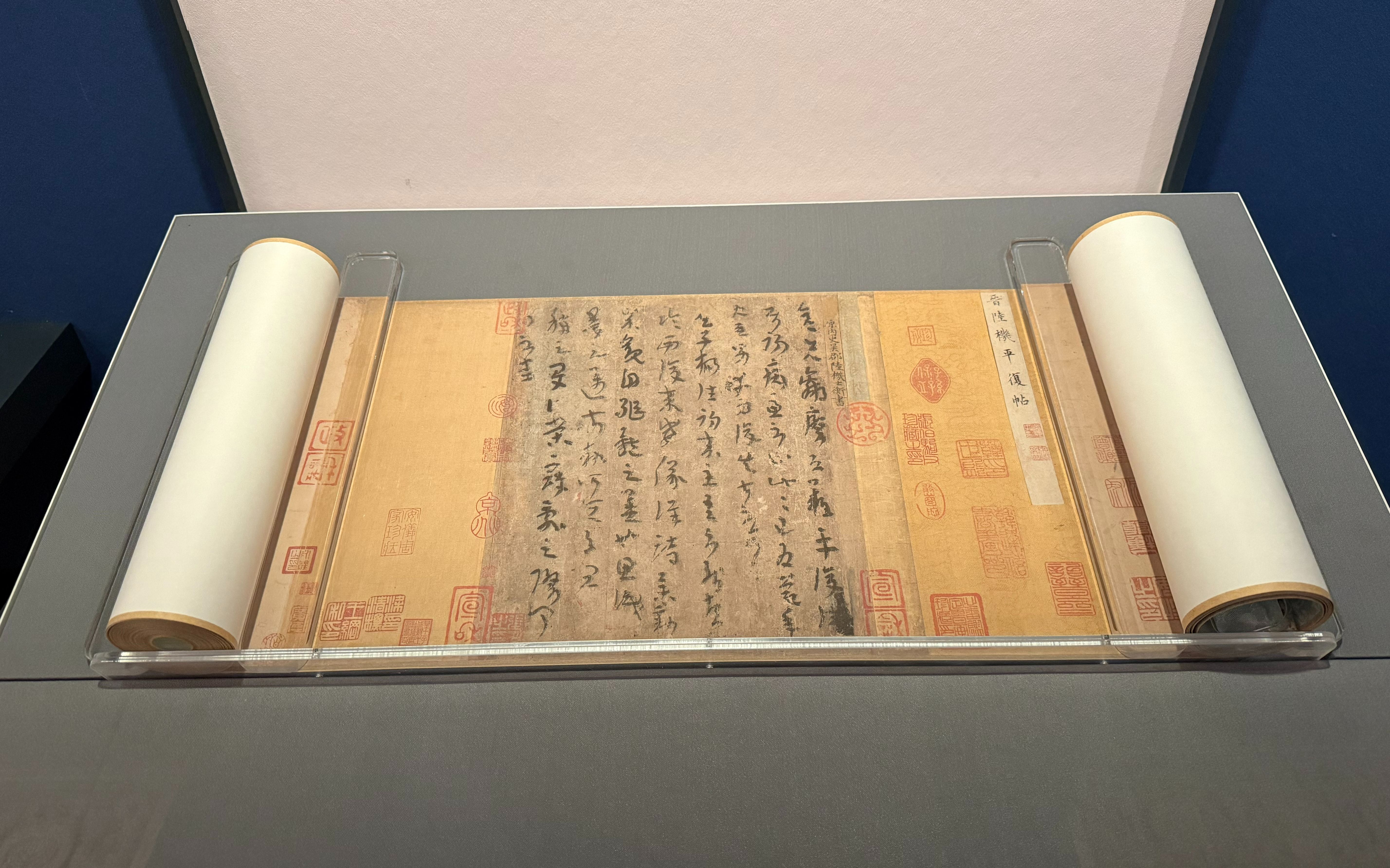 陆机草隶书《平复帖》卷(仿制品),原件由张伯驹、潘素夫妇捐赠。新京报记者 张建林 摄