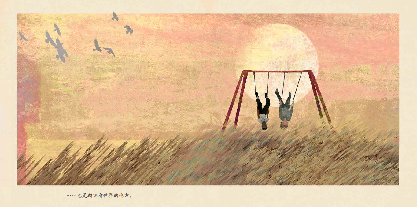 这是一本以海边的秋千为对象,讲述岁月流逝的绘本。书中的秋千静静地立在海边,似乎永远都不会发生改变,但它周围的时间无时无刻不在流逝,故事无时无刻不在发生,秋千始终是那座秋千,但在不同人的记忆里,秋千也不都是一样的。